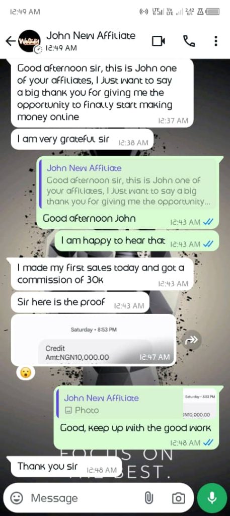 It has changed the lives of a lot of Nigerians, so it can be for you. Your smartphone + WhatsApp + Affiliate Marketing